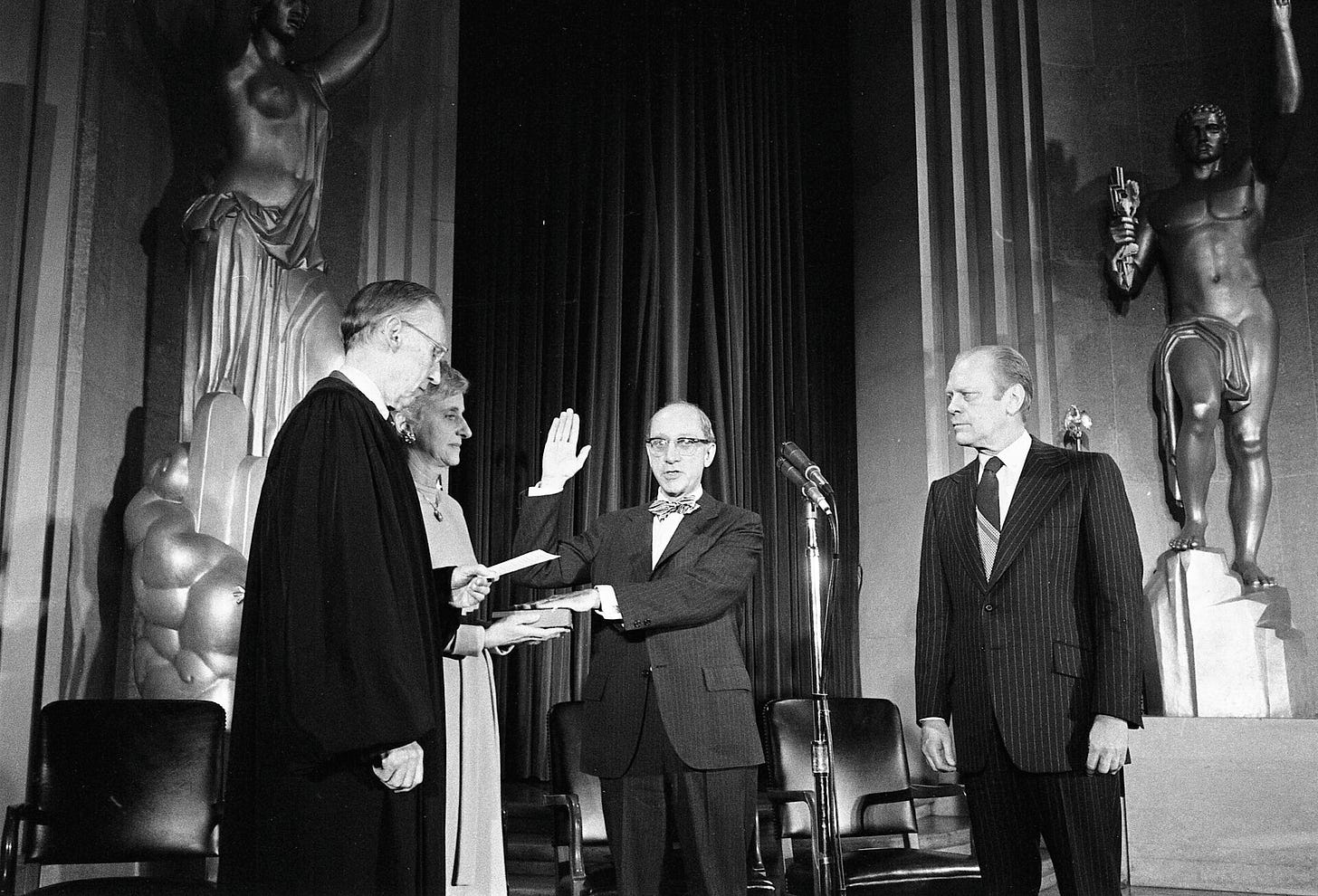 Levi was “a genuine intellectual, a gifted scholar and teacher, a former law school dean and university president, and an accomplished administrator of unimpeachable integrity who had experience in the Department of Justice but who had never been involved in politics,” as Larry Kramer said in a preface to a collection of Levi’s speeches. At the swearing-in ceremony President Ford described Levi as “a person who will make certain that all of our fellow citizens believe this government when laws are interpreted, when laws are carried out. And this faith is vitally important for our country at this very troubled time.”