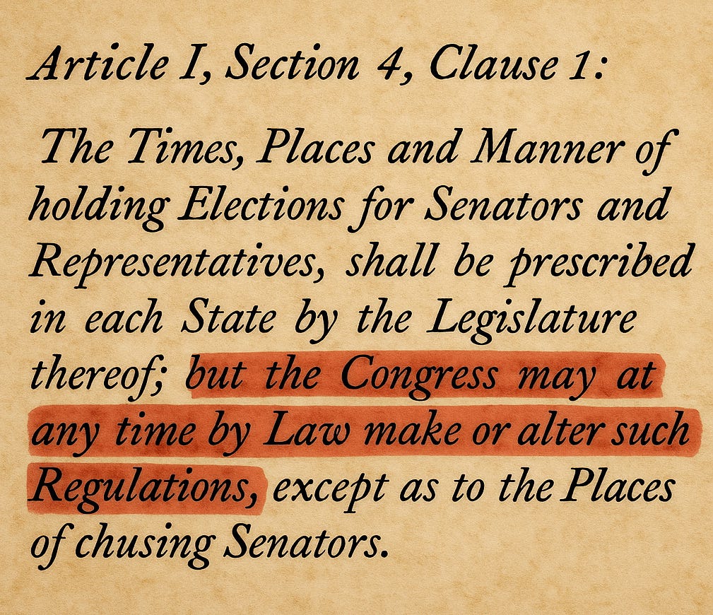 Trump feels compelled to turn to legislation because the more direct, unilateral route he has first attempted—an executive order—is rife with legal problems. One court has already issued a permanent injunction against implementation of one provision of that order that seeks to impose a new “proof of citizenship” requirement. More generally, the court stressed that “the Constitution… leave[s] election regulation solely to the States and to Congress.” Trump previously pledged that another executive order, by which mail balloting and machine voting would both be ended, would be forthcoming shortly, and he may still issue it. But his lawyers would have advised him, one assumes, that his prospects of making his desired changes by executive fiat are slim. A legislative fix is cleanest and, depending on how the changes are crafted, stands a better change of withstanding legal challenges.